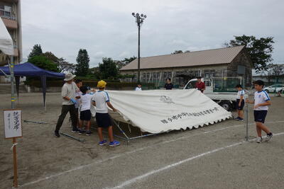1~4年生は給食終了後下校し、5・6年生、PTA役員、保護者の皆様、ICMおやじの会、職員で準備をしました。多くの方々にお越しいただいたおかげで、短時間で準備が終わりました。