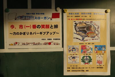 9月28日(土)に運動会が予定されています。12日(木)から全体練習が始まりました。「今、市(一)番の笑顔と絆 ~力のかぎりネバーギブアップ~」のスローガンのもと、全体練習に取り組みました。プラカードや合図、進行、校旗、国旗、市旗、応援団長などの6年生がしっかりと役割を果たし、それに応えるように全校生が集中して練習に取り組んでいました。