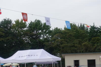 9月28日(土)に運動会が行われました。この日を迎えるにあたり多くの方々のご協力をいただきました。万国旗は閉校した清滝小から譲り受け、ICMおやじの会のみなさんでが補修し、ICMおやじの会のみなさんに3本かけていただきました。(今小とおやじの会、清滝小のシンボルが並んでいるものがありました。)準備には多くの保護者、ICMおやじの会のみなさんにお手伝いをいただきました。また、今年の運動会で初の試みとなる「ハーフタイム」としてエネルギーチャージの時間が設けられ、子どもたちに一口ようかんと塩タブレットが配られました。自分の家族の場所に戻りちょっとした家族の団らんの時間を過ごすことができました。