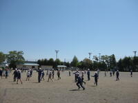 業間、卒業アルバムの集合写真撮影。よい天気すぎてまぶしそうにしていました。