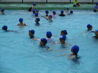 子どもたちには、体育担当の2組の先生を中心に、クロール・平泳ぎの指導を行ってきました。