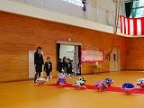 来賓の皆様に見守られ、一列で体育館に入場してきました。担任発表のあと、一人一人