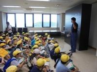 日光市消防本部では、消防署の中にはどんな設備があるか見学しました。また、救急車や消防車等にも実際に乗らせていただきました。消防服を着て放水する子ども達はとても楽しそうでした!