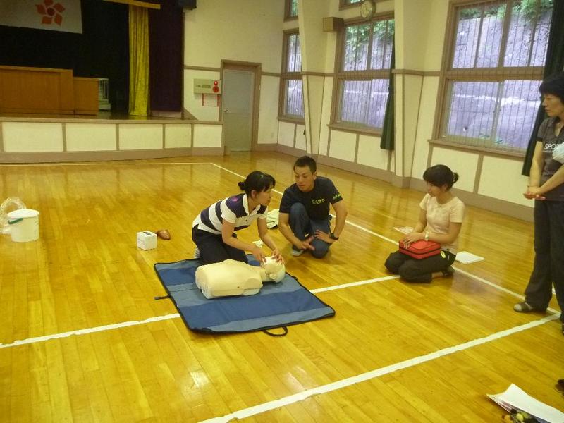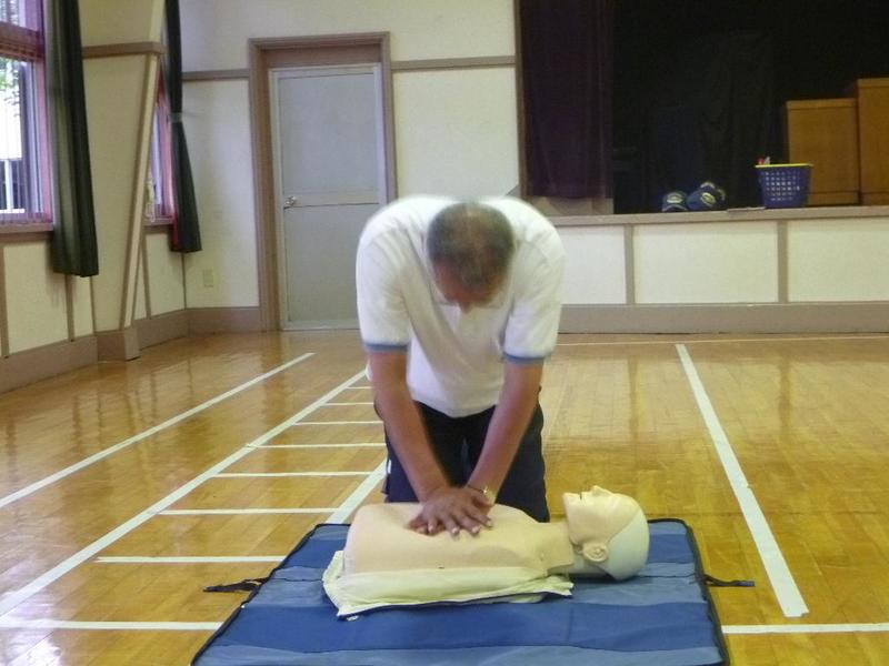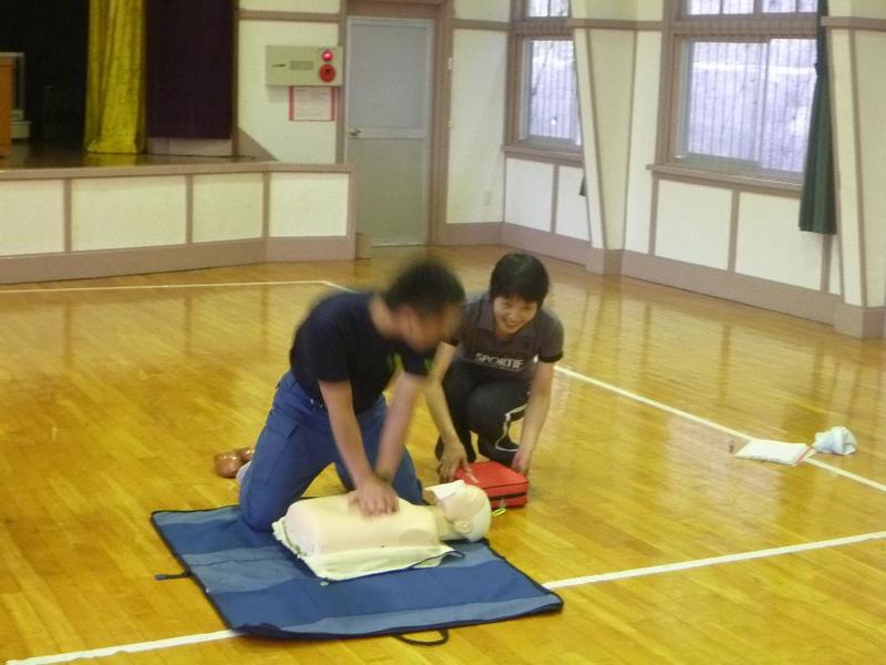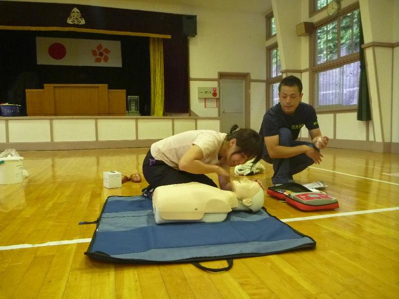 日光消防本部川治分署より、2名のイケメン救命士が来校。「大井川です」「阿久津です」 まずは見本を 「AEDを持ってきてください」