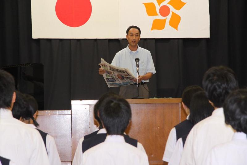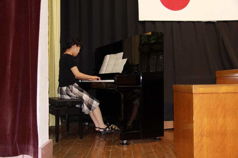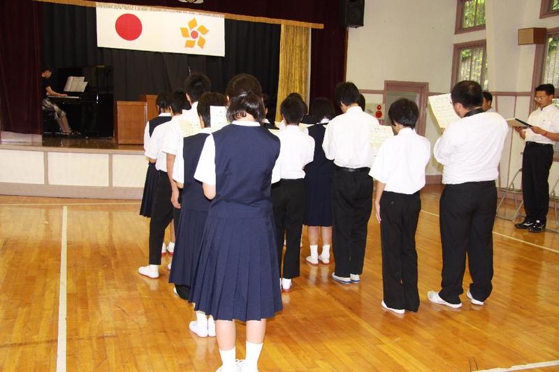 「これから1学期の終業式を始めます」 まずは「日光市の歌」を斉唱します 伴奏は、未華子先生