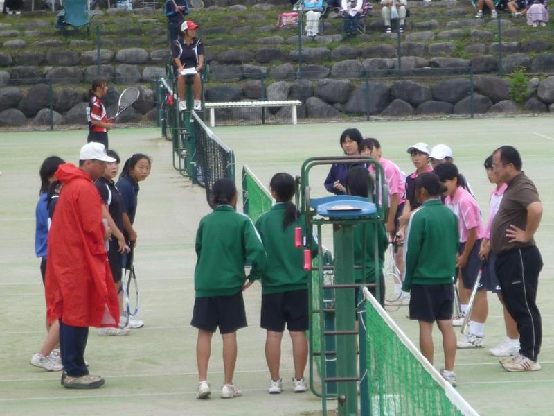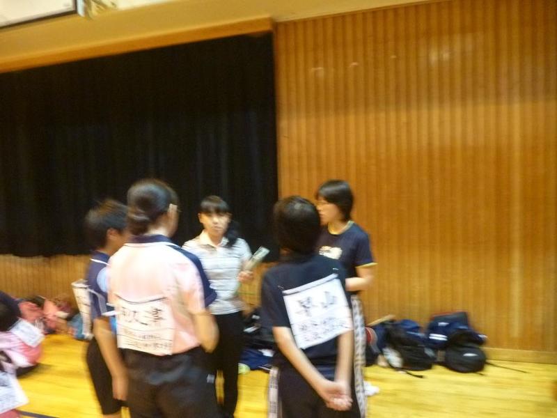 朝の打合せをする、専門部長と副部長。 開会式に臨む三依の3選手 顧問の未華子先生から試合前のアドバイス
