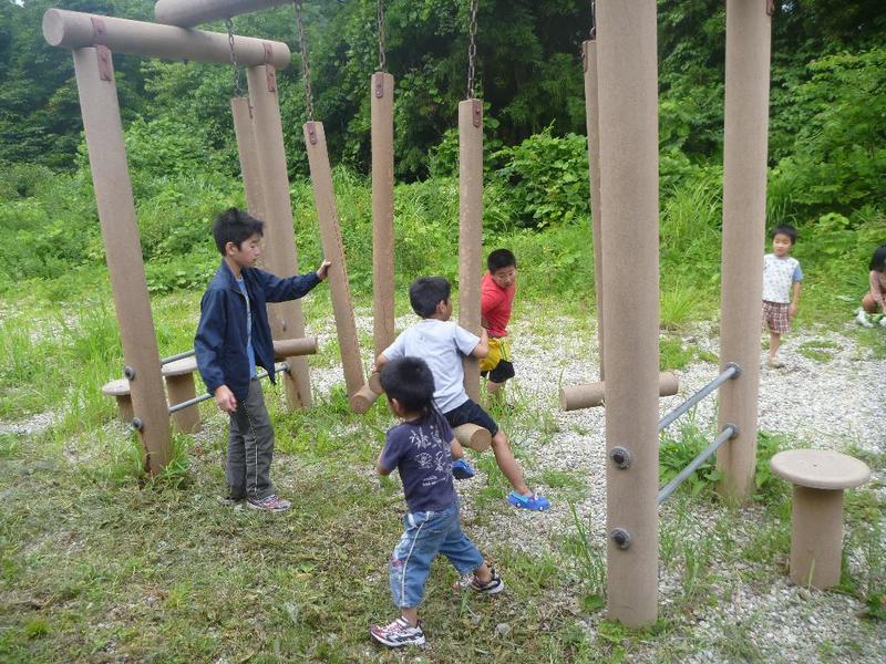 副支部長の山口さん 会計監査の阿久津さん 「うまい」 食べた後は運動 元気な子どもたち。一人は大人