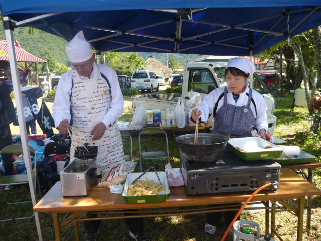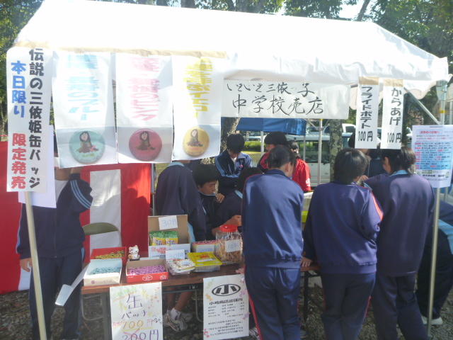 駄菓子やさんも盛況です 裏メニューのヤキトリも登場。本職の人ですか? みより姫缶バッジは・・・在庫多数