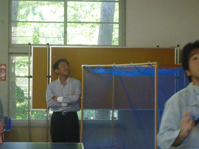 卓球場の雨漏りがひどいんです。 指導者は、市教委学校教育係 星野さん 同じく 山内さん あれっ