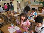 歯だけじゃなくて、口の周りまで真っ赤っかです。みんな鏡を見ながら大喜びです。