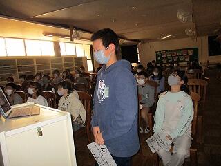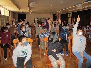 お互いの校歌を歌ったり、3択クイズをしたり、給食や休み時間の様子を教えてもらったり。時間の経過とともに子どもたちの緊張もほぐれ、質問タイムは大盛り上がり。