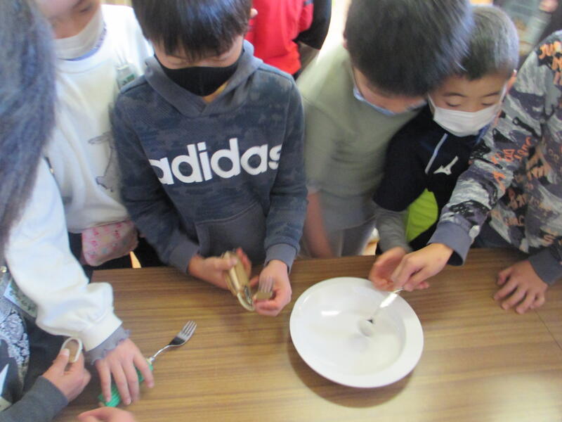 普段見慣れない介護箸や介護食器に子どもたちは興味津々できした。