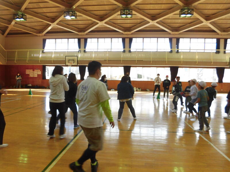 今年は体育館で体を動かしながらレクリエーションをしました。
