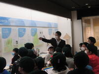 施設の方のとても丁寧なお話を真剣な表情で聞く4年生。メモをとる鉛筆の音が響きます。