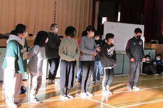体育館へ戻り、「見つからなかった人は前へ」の声に6人もの児童が立ち上がり、先生方はびっくり!!お見事、大きな拍手を浴びていました。