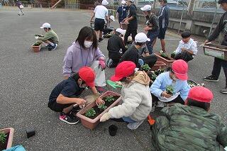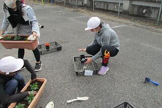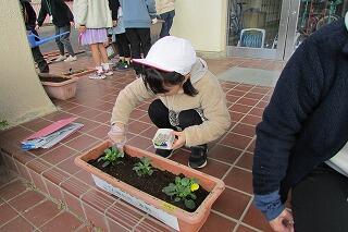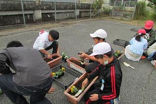 プランターに土を入れて,自分で苗を植えました。「こんな仕事したの初めてだよ!」とうれしそうに働いている子もいました。みんな秩序を保って,なごやかに作業をしました。