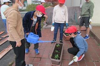 11月8日(火)の給食後に,全校児童で緑化活動に勤しみました。
