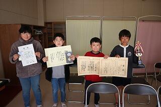業間にスポーツと安全マップ・防犯ポスター,校内持久走大会で素晴らしい成績を収めた子どもたちの表彰を行いました。