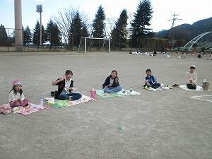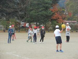 野外給食のあとは,ドッジボールや鬼ごっこなど,班ごとに6年生が考えた遊びで楽しく遊びました。