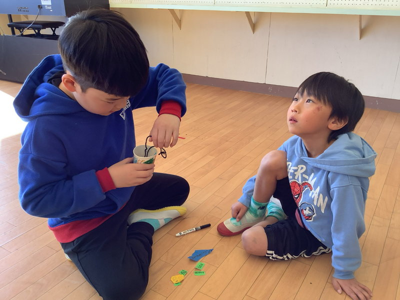 ルールを決めたり、折り紙で景品を作ったりして、2年生を楽しませようと頑張りました。