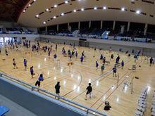 やって来ました、清原体育館。 各地区の代表がたくさん集まりました。前日の女子団体では1回戦惜しくも・・