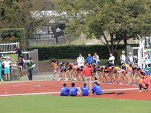 大勢の観客がいます。1年生1500m決勝レースがスタート。落中からは2名参加。先頭集団で引っ張ります。
