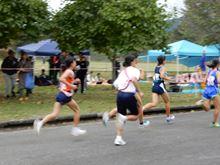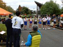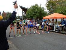 丸山公園内特設コース。最初はオープン個人レース。「オンユアマーク」「カチン」落中生も男子2名、女子3名が出場しました