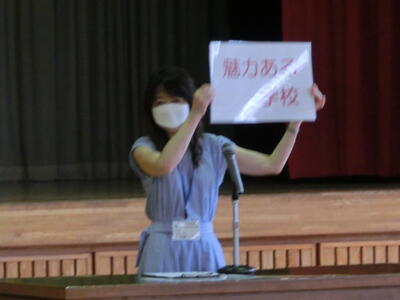 校長からは、一人一人が目標に向かって努力したことで『幸せな学校』に近づいた、という話がありました。