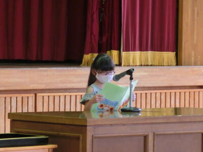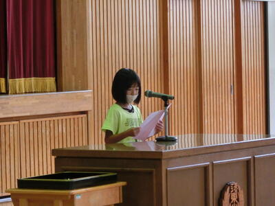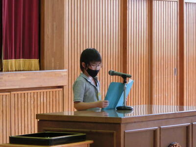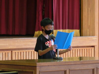 代表の子供たちは、1学期の反省と2学期の目標をみんなの前で堂々と発表することができました。