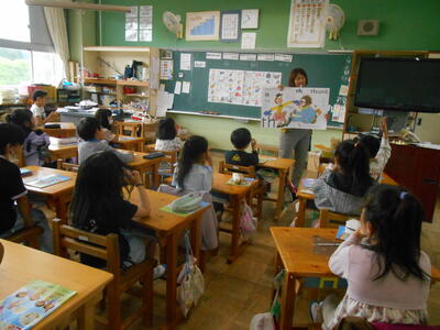 担任の先生とALTの先生と一緒に英語の活動を行います。