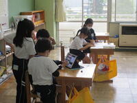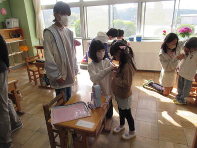 1年生に優しく教える6年生はとても頼もしいです。6年生のみなさん、ありがとうございました。