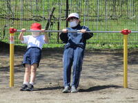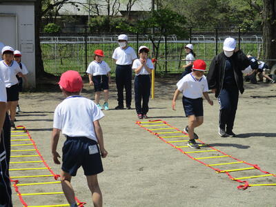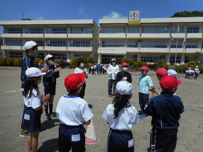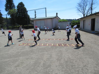1年生は、6年生とペアになって、サーキットトレーニングのやり方を教わりました。6年生は、一人一人丁寧に教えてあげていました。
