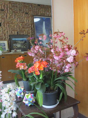 地域の学校支援ボランティアの方が、季節折々の花を飾ってくださっています。