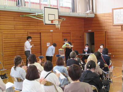 授業参観後にPTA総会が行われ、各議事について承認がなされました。新しい組織も決定し、前年度の会長にPTAより感謝の意を表し花束の贈呈が行われました。前会長様、長きに渡り大変お世話になりました。