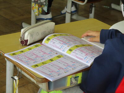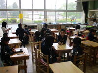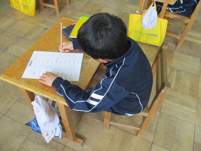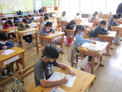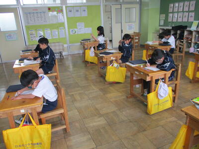 地図記号の復習です。どのくらい覚えられたかをプリントで確認していました。これから地図をよみのも楽しみです。