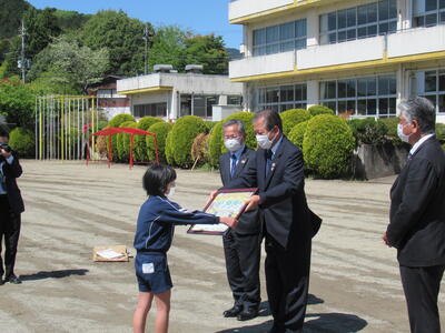 JA上都賀の組合長様よりお話をいただき、その後、目録の贈呈、皆で記念撮影を行いました。