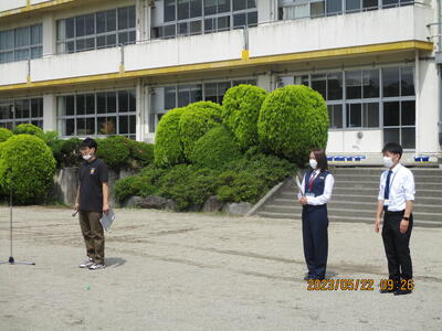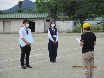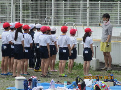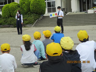 班ごとの練習が終わった後に、指導の方から、自転車に関するお話と不審者に声を掛けられたときにの逃げ方についてお話がありました。