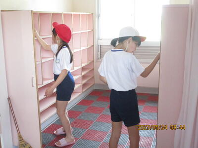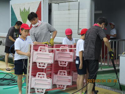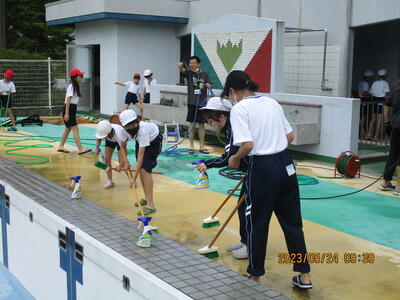 5月24日(水)2~3校時を使って、4・5・6年生でプール清掃を行いました。