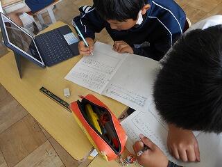 4年生が、社会科の調べ学習に熱心に取り組んでいました。