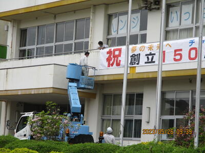 創立150周年記念事業の横断幕ができました