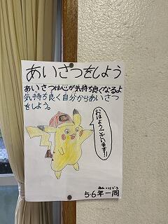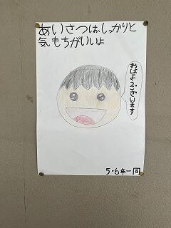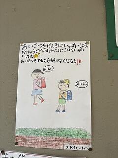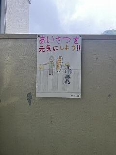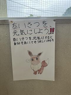 また、あいさつについてのポスターも作り、校舎内に掲示しました。
