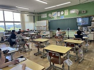 5月14日(火)、5年生は臨海自然教室で一緒に活動する落合東小学校のみなさんとオンラインによる