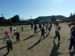 玉入れは低学年がダンス玉入れ、中学年がお助け玉入れでした。