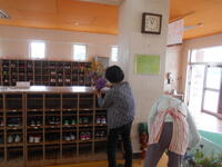 図書の受付。小百小から絵本などたくさん引っ越しました。