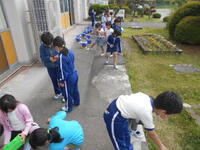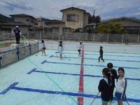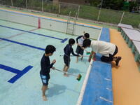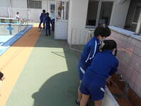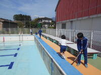 6年生がプールの中をきれいにします。6年生の写真は明日載せます。