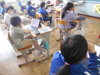 4年音楽、リズムや拍のおもしろさを感じながら動画を見ています。