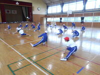 3年体育、準備運動です。元気のよい号令が聞こえます。