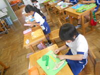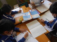 6年総合、修学旅行のまとめの一つ、添乗員さんにお礼の手紙を書いています。