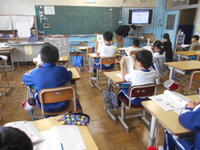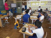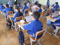 3年英語、「How many ・・・」の言い方を聞いています。