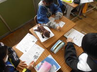 たてわり班で遊ぶかどうか、友達の考えを聴いています。